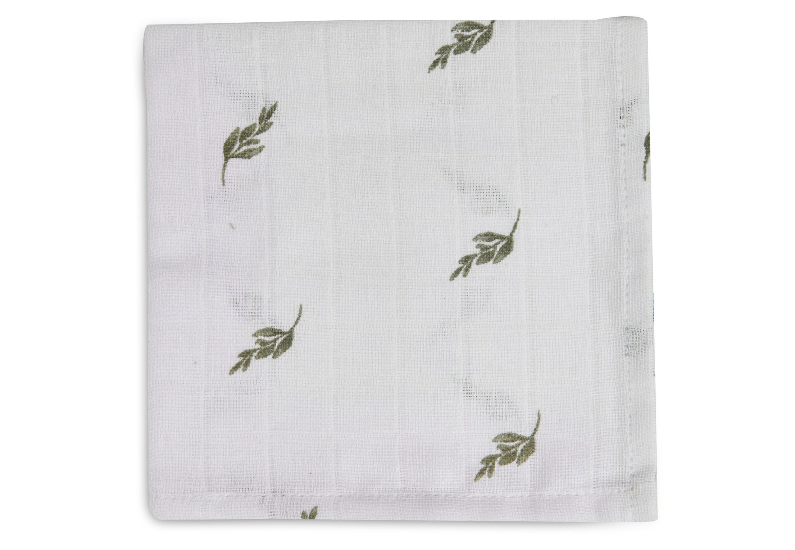 Fijne multidoek met Olijfbladprint. Deze mulitdoek van Jollein heeft een afmeting van 115×115 cm.